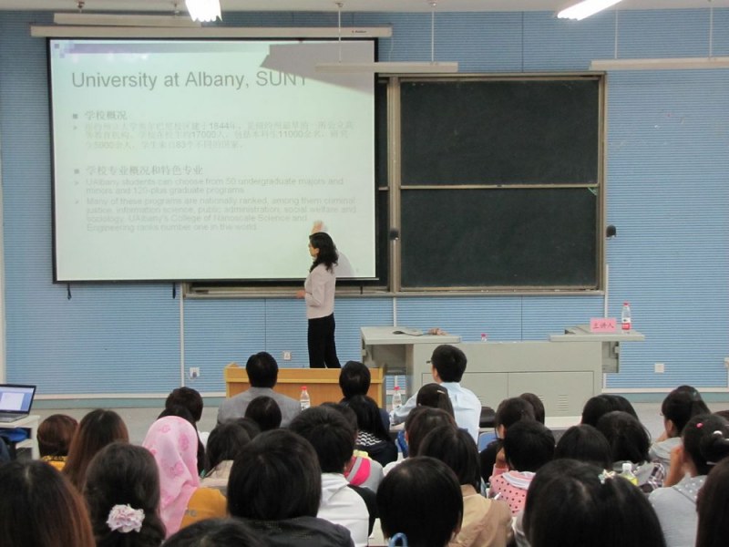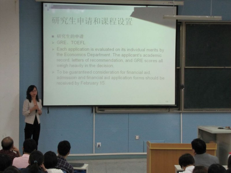 报告会介绍了美国Ualbany大学的院系设备、地理位置、校园环境以及当地的社会环境和国家留学基金委公派留学项目。给大家展示了大量的照片,为准备出国深造的同学们指明了方向,并针对我国经济学教育的现状提出了相应的建议和改善方法。