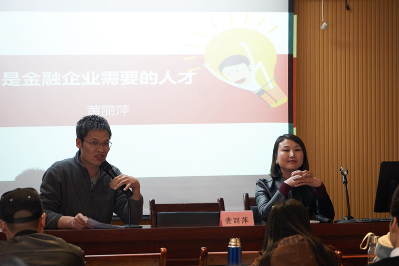报告会中,黄丽萍总经理结合中信银行卓越的企业文化和自身的从业感受,深入浅出地为同学们生动讲解了金融企业亟需人才所应具备的一些基本素质。她主要向大家分享了成长为一名优秀的金融工作者的从业感悟:其一,要具有朴素的价值观并要做好充分准备以能够主动选择工作岗位;其二,进入金融机构从业的目标愿景一定要清晰;其三,要脚踏实地从基层做起,逐步培养对金融业务的综合驾驭能力;其四,要成长为一名拥有大智慧、勇于主动承担责任的员工,从而实现自己个人才能优势与企业价值的最大化匹配。其五,对待工作目标要保持持久的信念和热情。黄总对于职业的热爱、执念、忠诚、奉献精神深深打动和感染了在场的每一位同学,富有激情和实践指导意义的讲座令同学们耳目一新、受益匪浅,同时也深刻感受到自身与金融机构用人要求的差异以及今后需要进一步努力改进和加强的方向。同学们十分期待这些金融精英们为即将步入职场的自己传道、授业、解惑,成为自己实现人生理想的职业领路人。