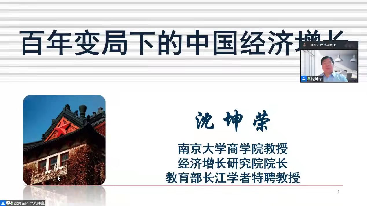 4月26日下午,应mg4355线路检测官网邀请,南京大学商学院博士生导师沈坤荣教授在线为我院师生作了题为《百年变局下的中国经济增长》的学术报告。报告会由陈开军副院长主持,100余名师生通过线上、线下的方式参加了本次学术报告会。
