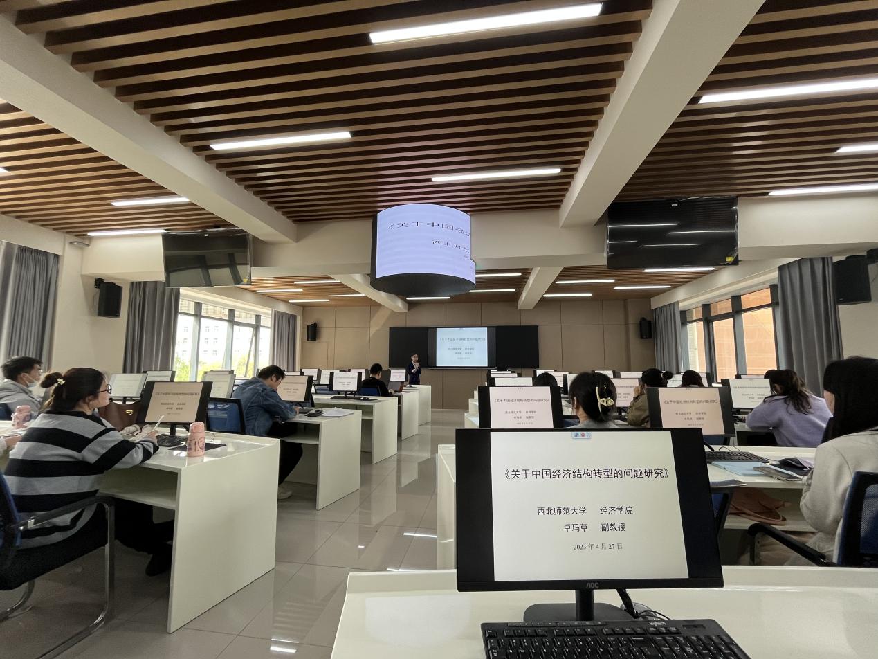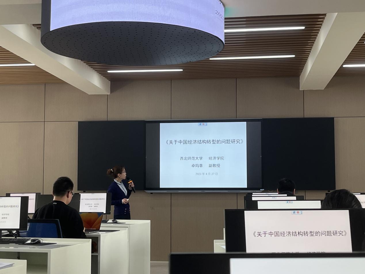 卓玛草老师的报告聚焦经济结构转型,内容充实,逻辑严密,方法科学,实用性强,对于与会师生展开中国经济结构转型的研究、撰写并发表学术论文具有很好的指导作用。报告会在热烈的氛围中落下帷幕。