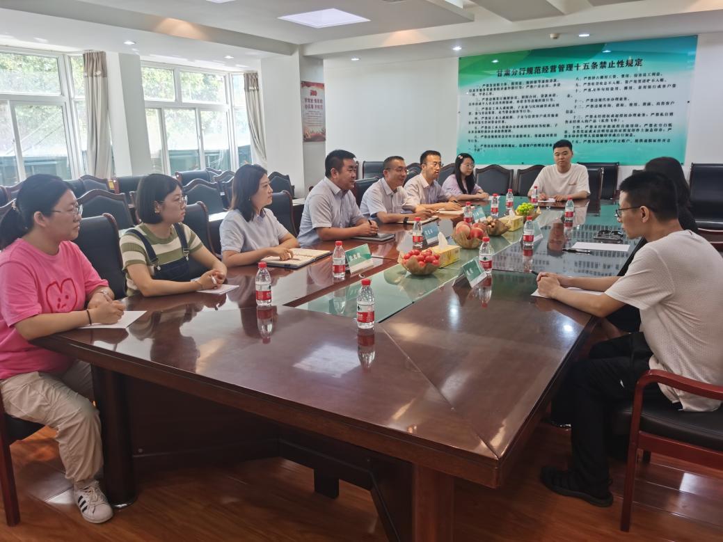 8月15日下午,mg4355线路检测官网副院长徐婧带领研究生秘书姚博、辅导员汪晟赴农业银行安宁支行与支行领导开展了学生实习工作座谈会。农业银行安宁支行行长张廷禄、副行长李占林、副行长徐光紫、办公室主任栗明乾,以及学院在支行参加实习的4位研究生参与了本次座谈会。