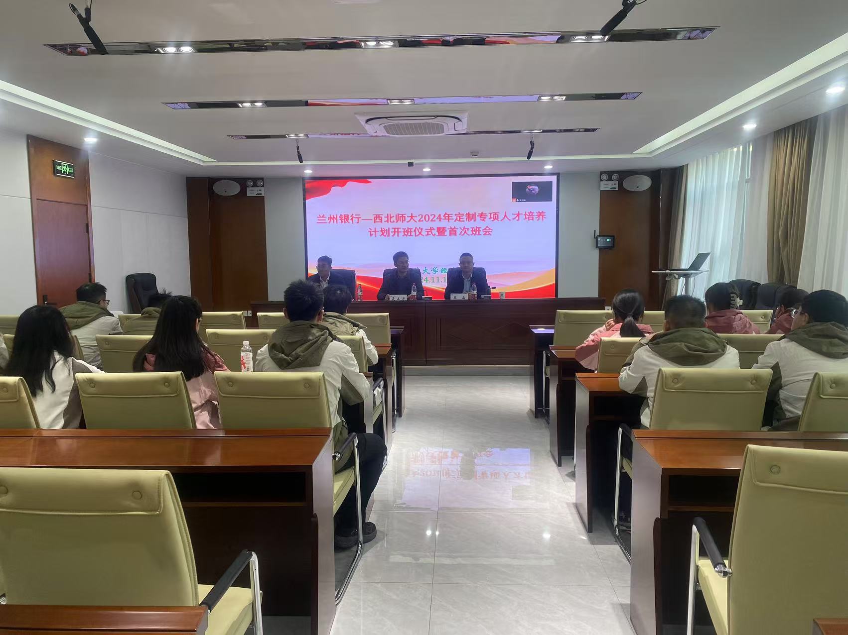 为切实推动学生高质量就业,夯实校企联动人才培养模式,助力一流学科建设。11月13日晚,兰州银行—西北师大2024年定制专项人才培养计划开班仪式暨首次班会在西北师范大学致公楼C区3楼313会议室召开(以下简称“订单班”)。会议由mg4355电子线路教师、订单班校方班主任张卫峰主持,兰州银行股份有限公司团委书记、银行方班主任王晶,mg4355电子线路院长聂正彦出席,来自西北师范大学、兰州交通大学和兰州理工大学的20余名学员参加会议。