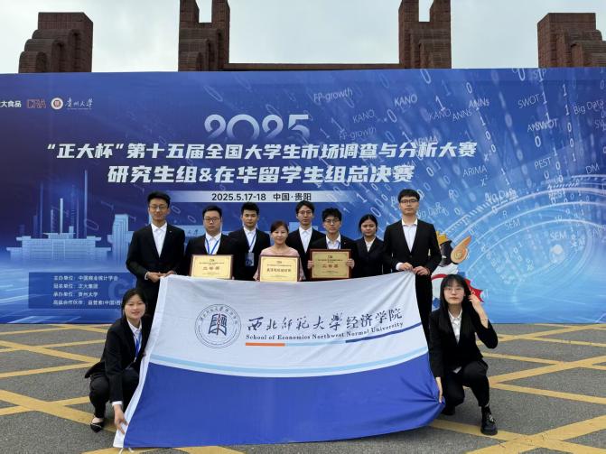 2025年5月17日,第十五届全国大学生市场调查与分析大赛研究生组全国总决赛在贵州大学举行。本次大赛由中国商业统计学会主办,来自全国31个省(区、市)的87所高等院校的146支参赛队伍入围全国总决赛。我院两支参赛队伍均获得大赛二等奖,西北师范大学也凭借出色的组织工作斩获最佳院校组织奖。