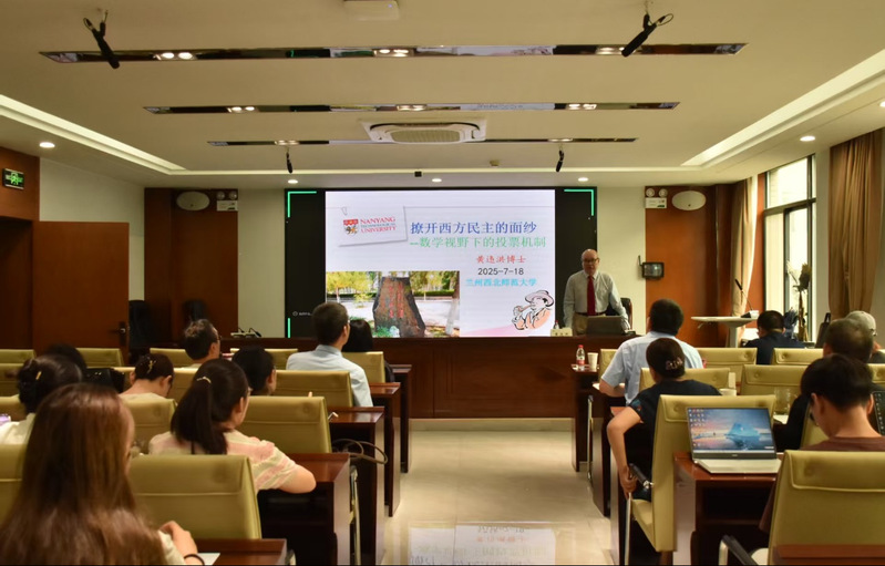 7月17日,西北师范大学特聘教授、新加坡南洋理工大学经济系黄违洪教授应邀在致公楼C区313报告厅作了题为“撩开西方民主的面纱——数学视野下的投票机制”和“太极之道与经济之理:动静之间的智慧共鸣”的学术报告。报告会由副院长陈开军主持,学院120余名师生参加了本次报告会。