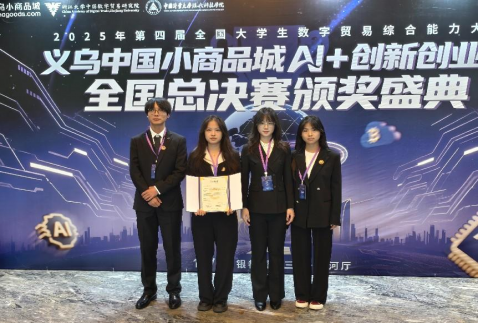 10月23日,2025年第四届全国大学生数字贸易综合能力大赛义乌小商品城AI+创新创业赛全国总决赛在浙江义乌圆满落幕。本届赛事吸引全国309所高校的2279支团队参与,历经校赛、省赛的层层筛选,最终105支优秀团队晋级全国总决赛。我院国际经济与贸易系本科生参赛队“跨境e次方”队,凭借优异表现获得全国三等奖。